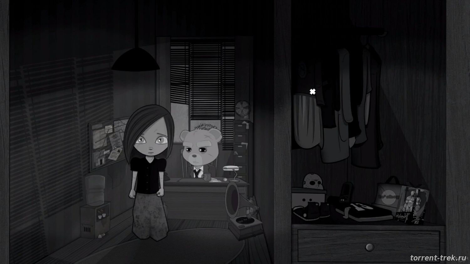 Давно не было игр в стиле нуар, и вот Bear With Me вышла в свет и покорила уже не мало сердец у любителей детективов и приключений. Инди игра расскажет нам историю про Эмбер и её напарника мишку Тед И, который выступает в роли детектива. Задача у наших героев очень проста, отыскать потерянного среди ночи брата Флинта. Скачать игру Bear With Me через торрент на PC можно с нашего сайта и пойти по следам брата, ища постоянно различные улики, зацепки, допрашивать свидетелей и пополнять дело фактами и доказательствами. Но не всё так просто, кардинально изменит ход сюжета человек в красном, который поджигает всё на своём пути и разыскивает Эмбер.